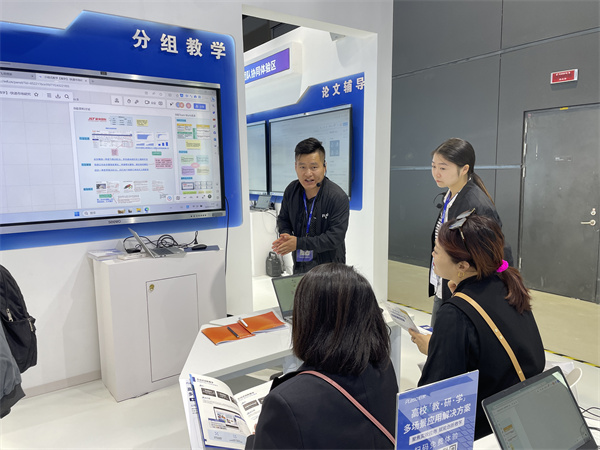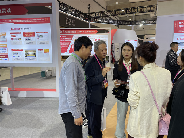 开幕式后,我院参会代表重点参观了实验室及科研仪器设备、信息化及智慧教育、实训及机电以及第三批全国高校黄大年式教师团队案例展等展区。通过与参展商进行沟通,详细了解各类新型教学产品、教育新技术的应用情况。