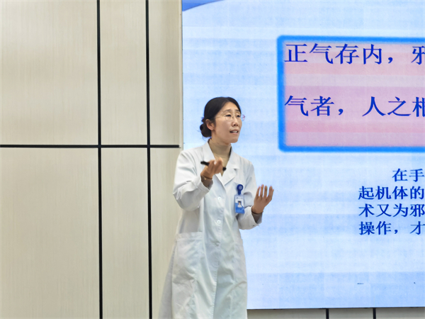 内蒙古自治区中医医院韩蓓主任作关于女性健康教育专题讲座。韩蓓主任通过生动的案例和专业的讲解,向教职工们科普女性生理健康方面的知识,介绍妇科常见疾病的预防与治疗,并与现场教职工进行互动交流,答疑解惑。