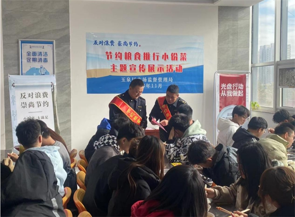 为持续开展反对餐饮浪费,进一步弘扬中华民族勤俭节约的传统美德。倡导“反对浪费,崇尚节约”社会风尚,近日,呼和浩特市玉泉区市场监督管理局来我院开展节约粮食推行小份菜主体宣传展示活动。