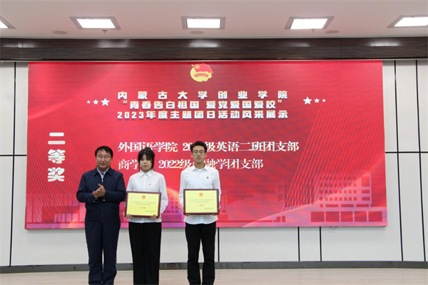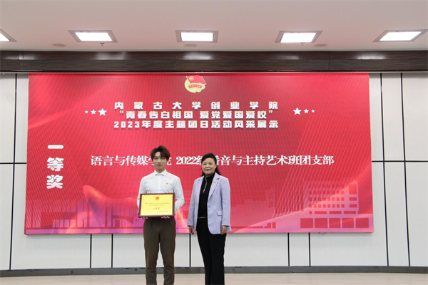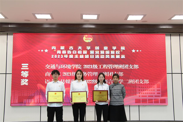经过精彩展示,语言与传媒学院2022级播音与主持艺术班团支部获得一等奖,外国语学院2021级英语二班团支部、商学院2022级金融学班团支部获得二等奖,交通与环境学院2023级工程管理班团支部、商学院2021级财务管理一班团支部、语言与传媒学院2022级汉语言文学二班团支部获得三等奖,学院领导和老师为获奖团支部颁奖。